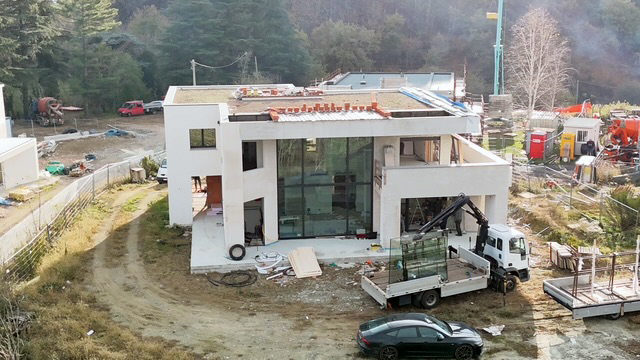 Realizzazione ex-novo su progetto del cliente di una villa privata elegante a Samone, dotata di una splendida piscina, distribuita su due piani fuori terra, con finiture di pregio che esaltano il design e la qualità degli spazi.