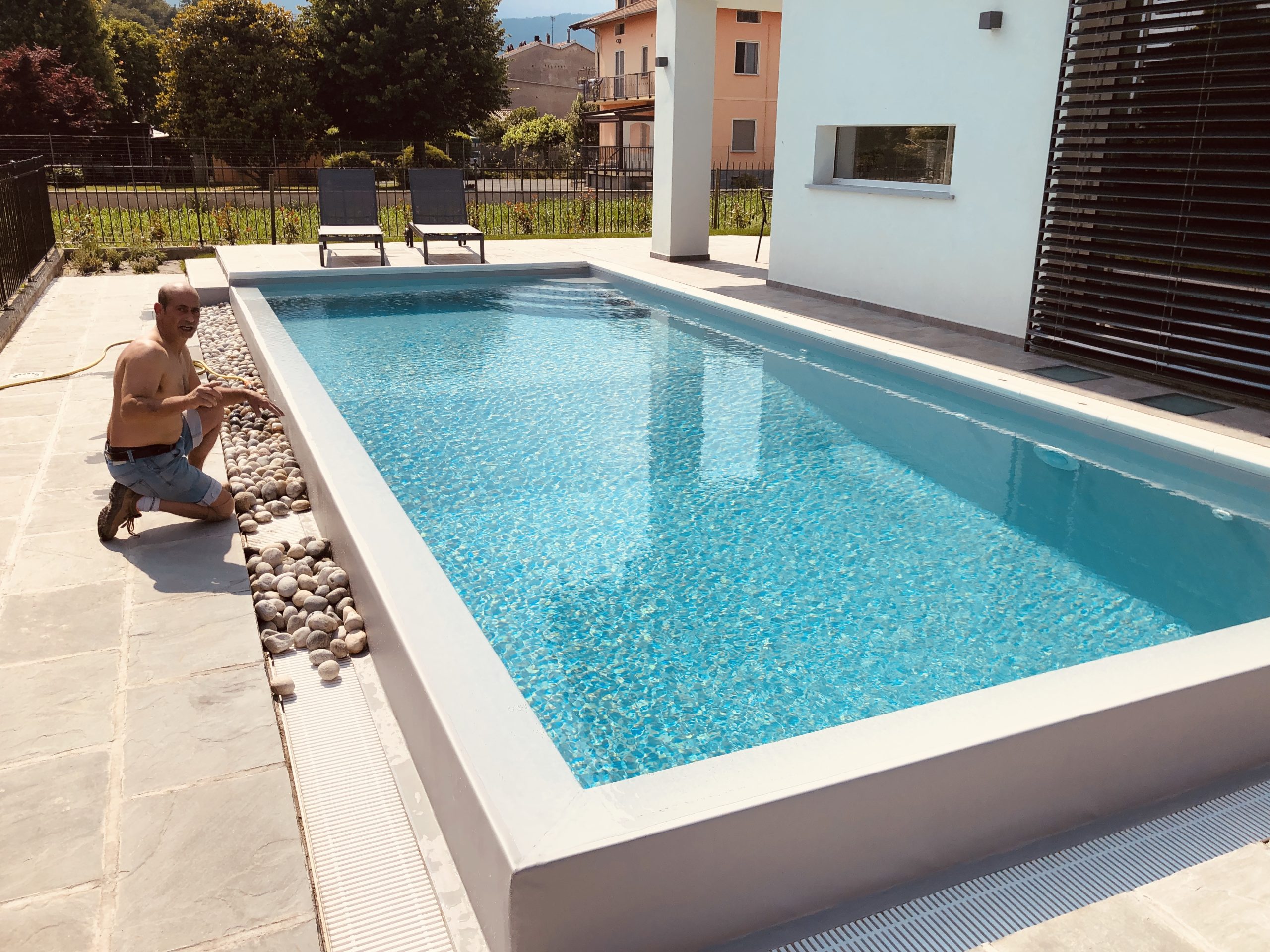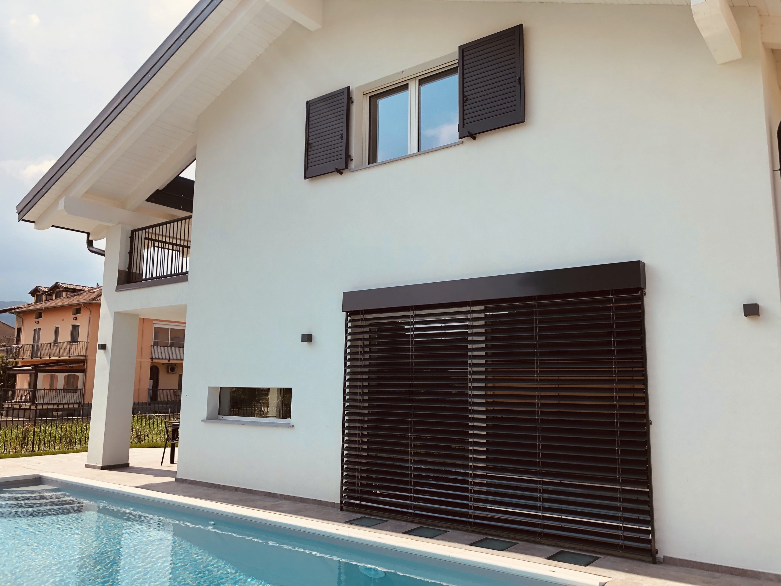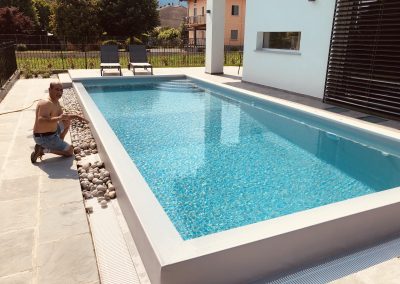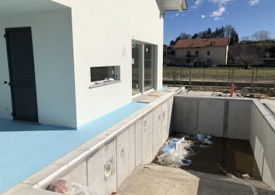 Realizzazione ex-novo su progetto del cliente di una villa privata elegante a Samone, dotata di una splendida piscina, distribuita su due piani fuori terra, con finiture di pregio che esaltano il design e la qualità degli spazi.